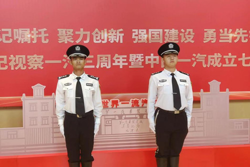 ? ? ?2023年7月15日,是習近平總書記視察一汽三周年暨中國一汽成立七十周年。為慶祝這一重要歷史性的時刻,反映廣大干部職工共慶一汽生日的喜悅心情,展示一汽人牢記囑托、聚力創新、強國建設、勇當先鋒的精神風貌,一汽集團舉行了一系列慶祝、紀念活動。長春保安集團汽開分公司出動300余名保安員,全力以赴做好70周年慶祝活動安保維穩工作,以實際行動為一汽成立70周年獻禮。